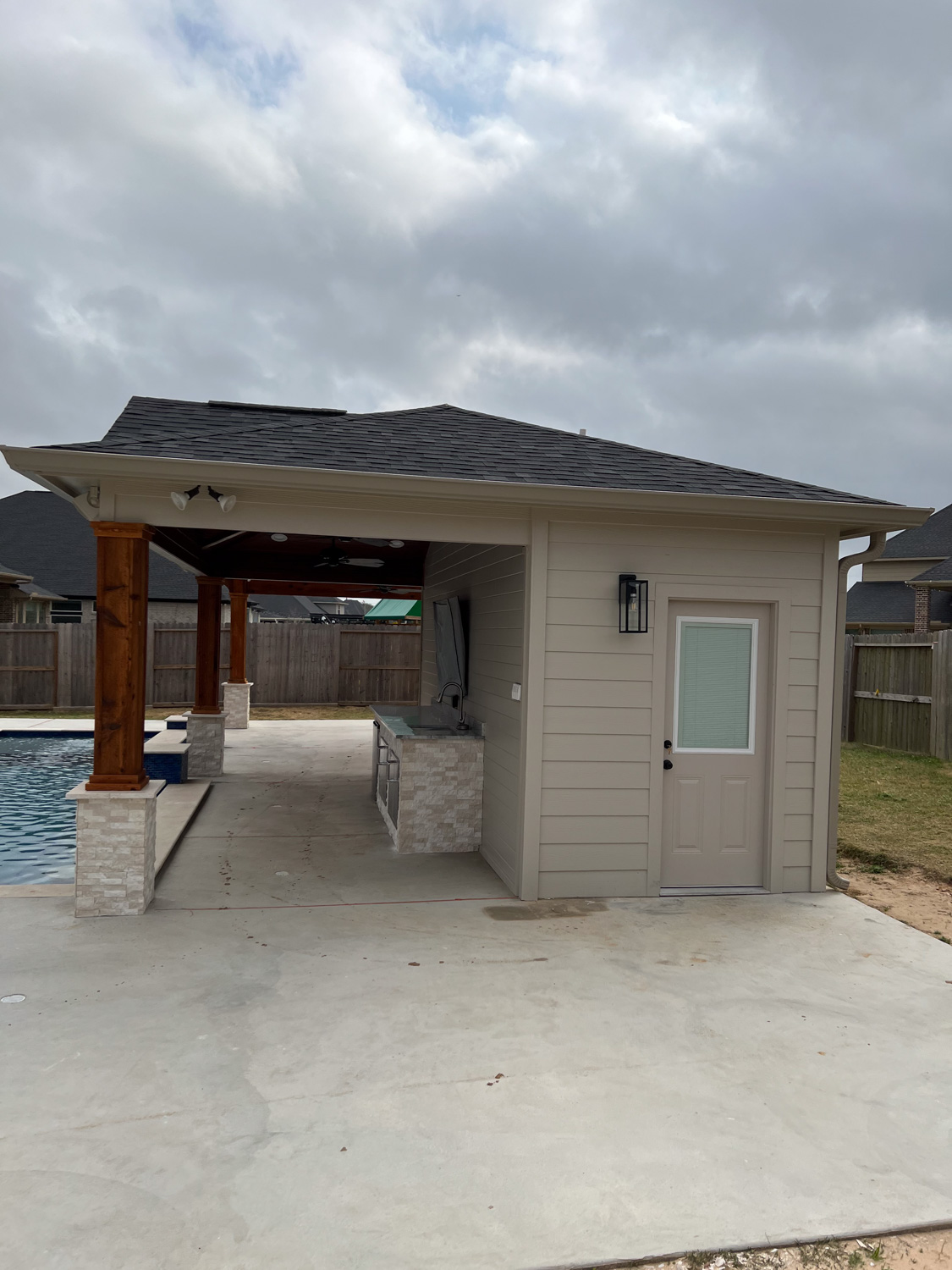 Step into relaxation with our cabana gallery in Pearland. Backyard Retreats designs luxury cabanas that combine style, comfort, and craftsmanship for your private paradise.